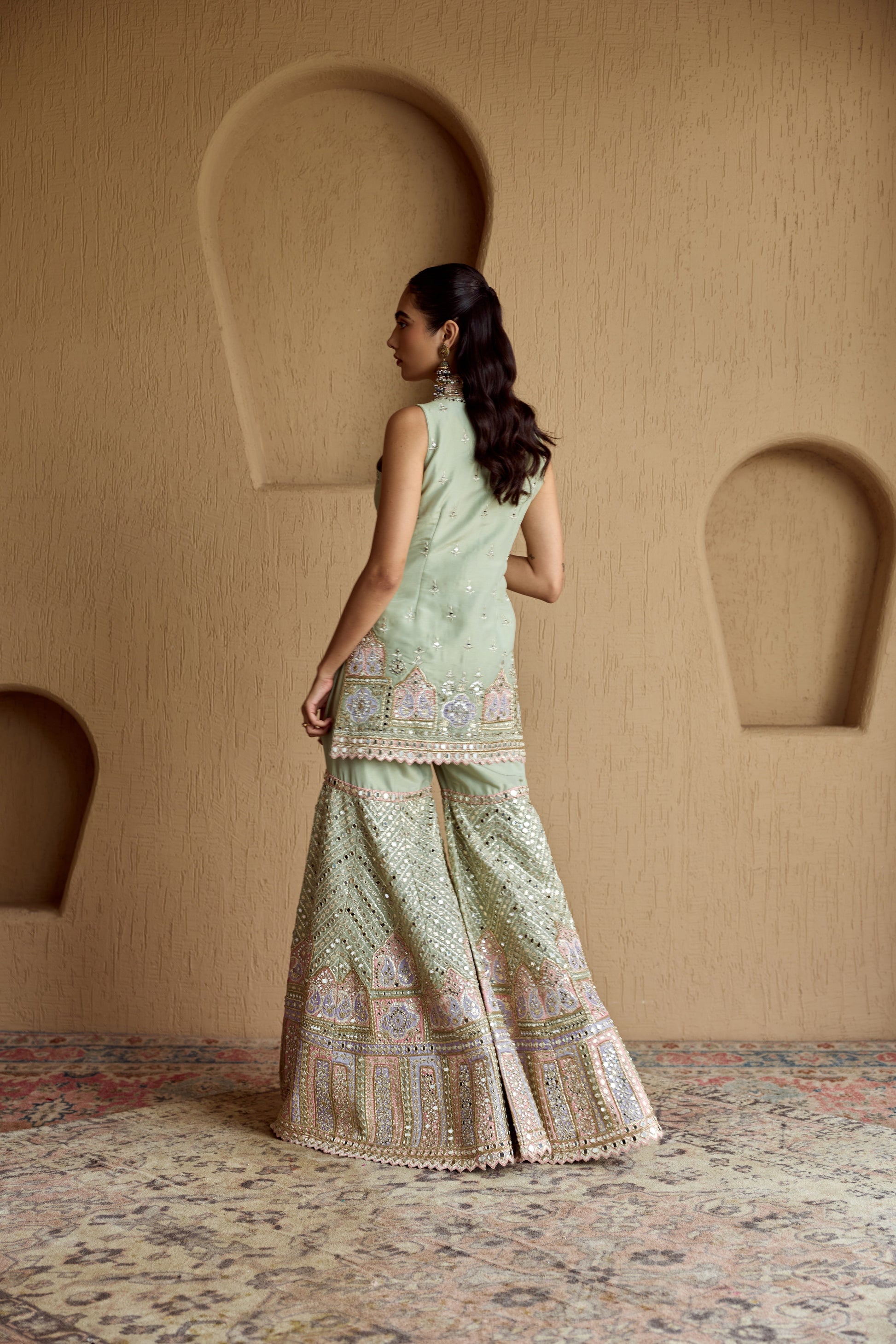 MINT GREEN TISSUE PATCH KURTA SHARARA SET